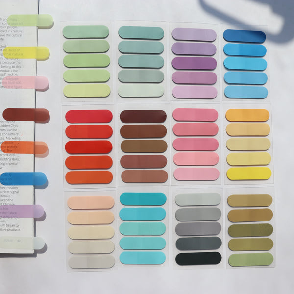 The tabs are transparent so you can still read text and quotes beneath them. They mark without blocking, ideal for annotation and study.