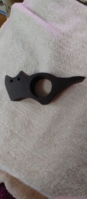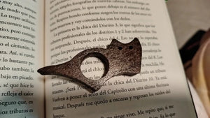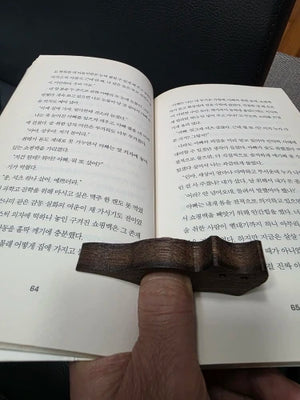 This is a thumb page holder designed to keep your book open while you read. It rests gently on your thumb and supports the pages without flattening or damaging them.